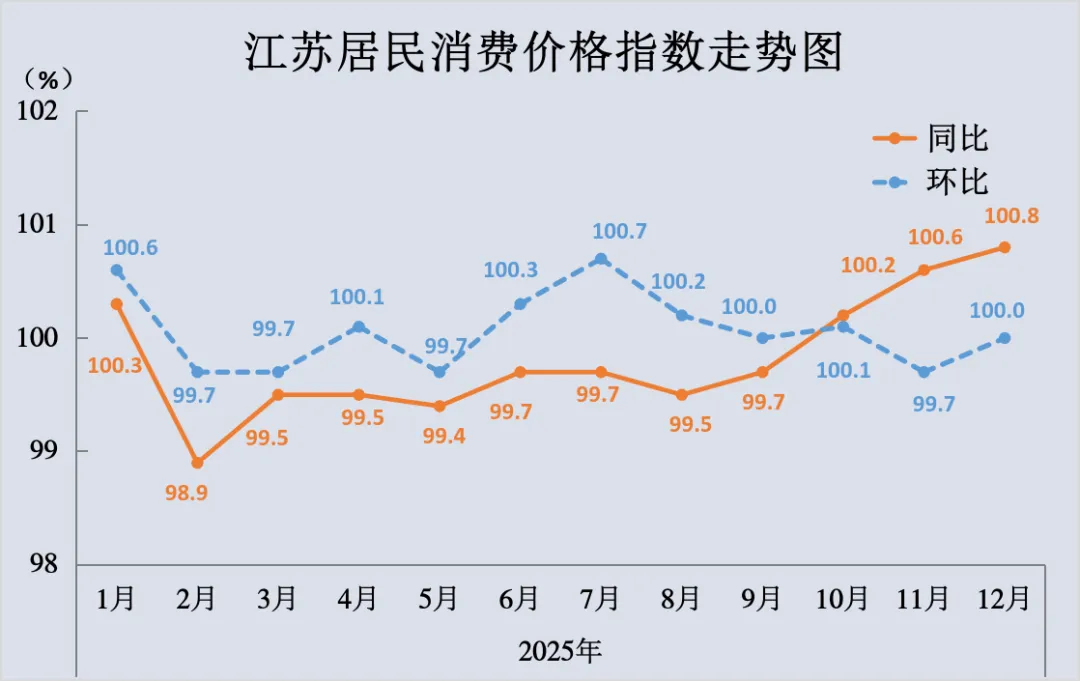 2025年12月份江苏居民消费价格同比上涨0.8%