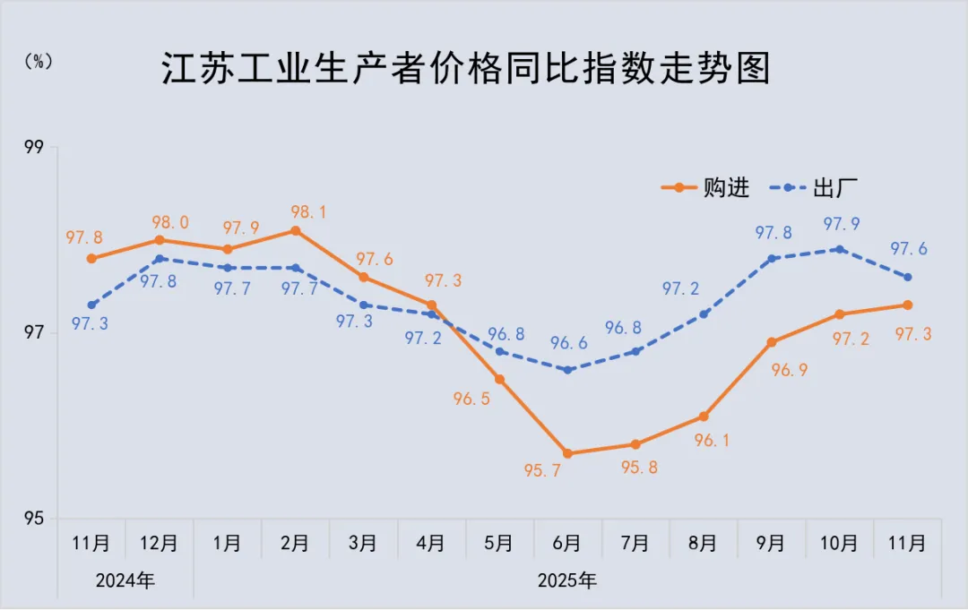 2025年11月份江苏工业生产者出厂价格同比下降2.4%